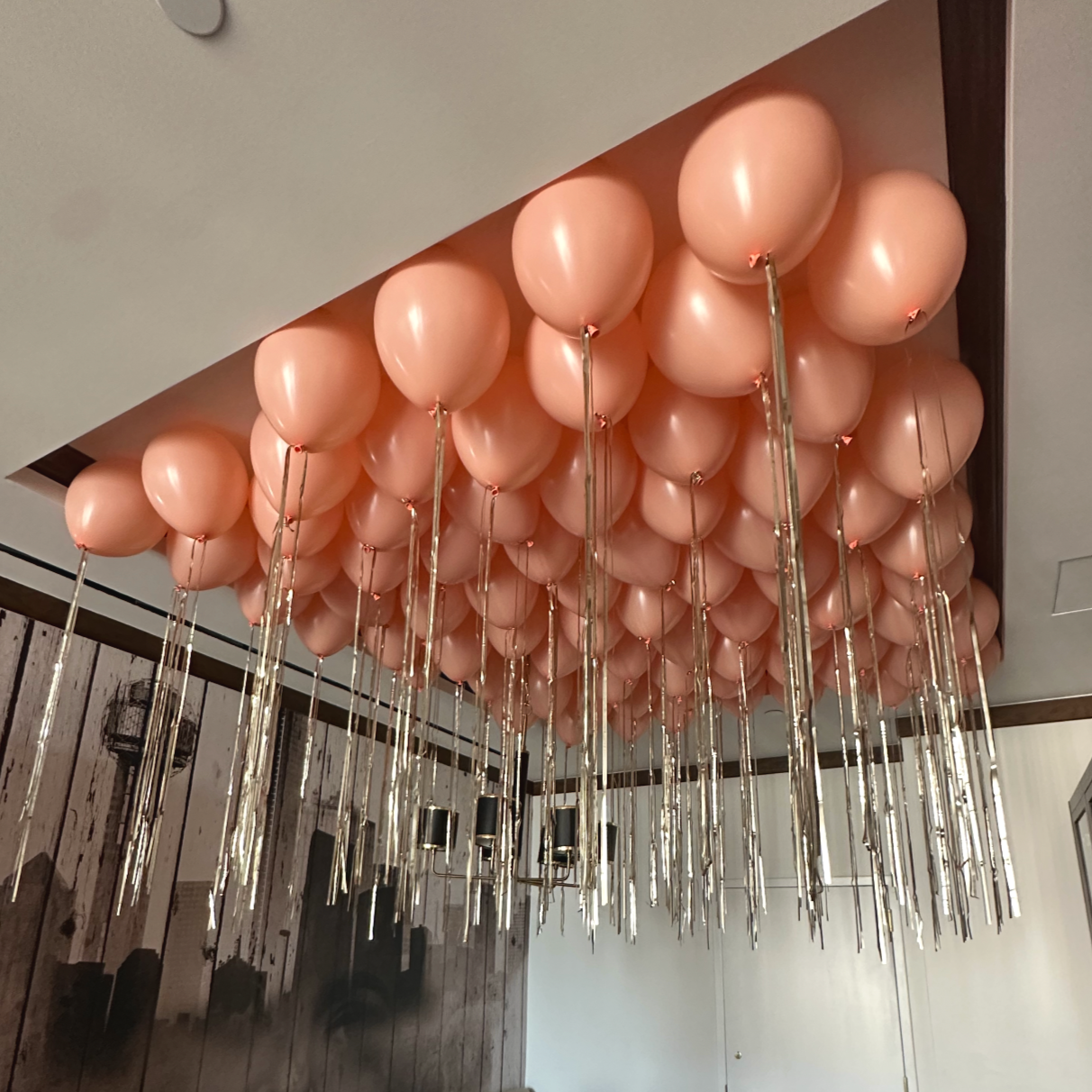 Ceiling balloons with fringe strings are the new staple and one of our favorite moments. Dazzle up your party and truly wow your guests!